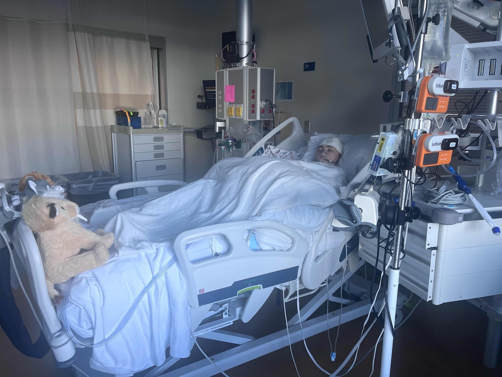 Wyatt’s surgery was successful!! After a very long 2.5 weeks in the Pediatric ICU, it looks like we arrived at the best case scenario. It’s the first time in his life since he was just a couple months old, that he no longer has a shunt. There is a capped off drain in his ventricles and if he develops signs of hydrocephalus, the drain can be opened and tapped and/or he can get a shunt. It’s been a total tune up for Wyatt here at the PICU. Early on the docs thought he reherniated but he didn’t, we learned why his arm is weak, we experimented with various pain meds to find the right ones, we addressed the infection and probably a few other things I can’t think of. They looked after his entire body- including social emotional and diet. Today we will spend in the PICU and then move to the step down floor. After that is unknown- may be inpatient rehab, outpatient intensive, or something else. After surgery, Benji and I were waiting outside the Wyatt’s room while the nurses and doctors were getting him situated. When there is a code blue- EVERYONE comes running, the blue light flashes outside the room and there is an alarm that sounds on the floor. Well that happened when we were in the hallway- and it was Wyatt! Luckily someone in the room pressed it by mistake but my heart sank for a few seconds.